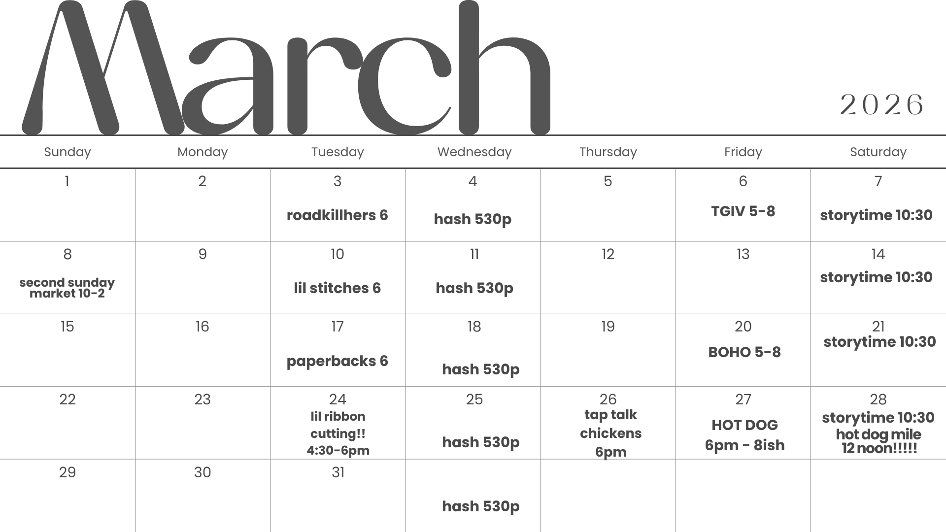 CHECK CALENDAR FOR SPECIAL EVENTS!
